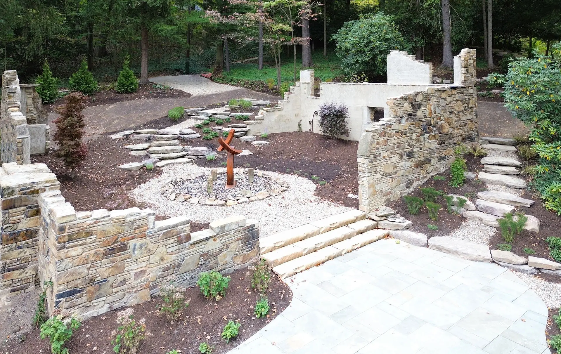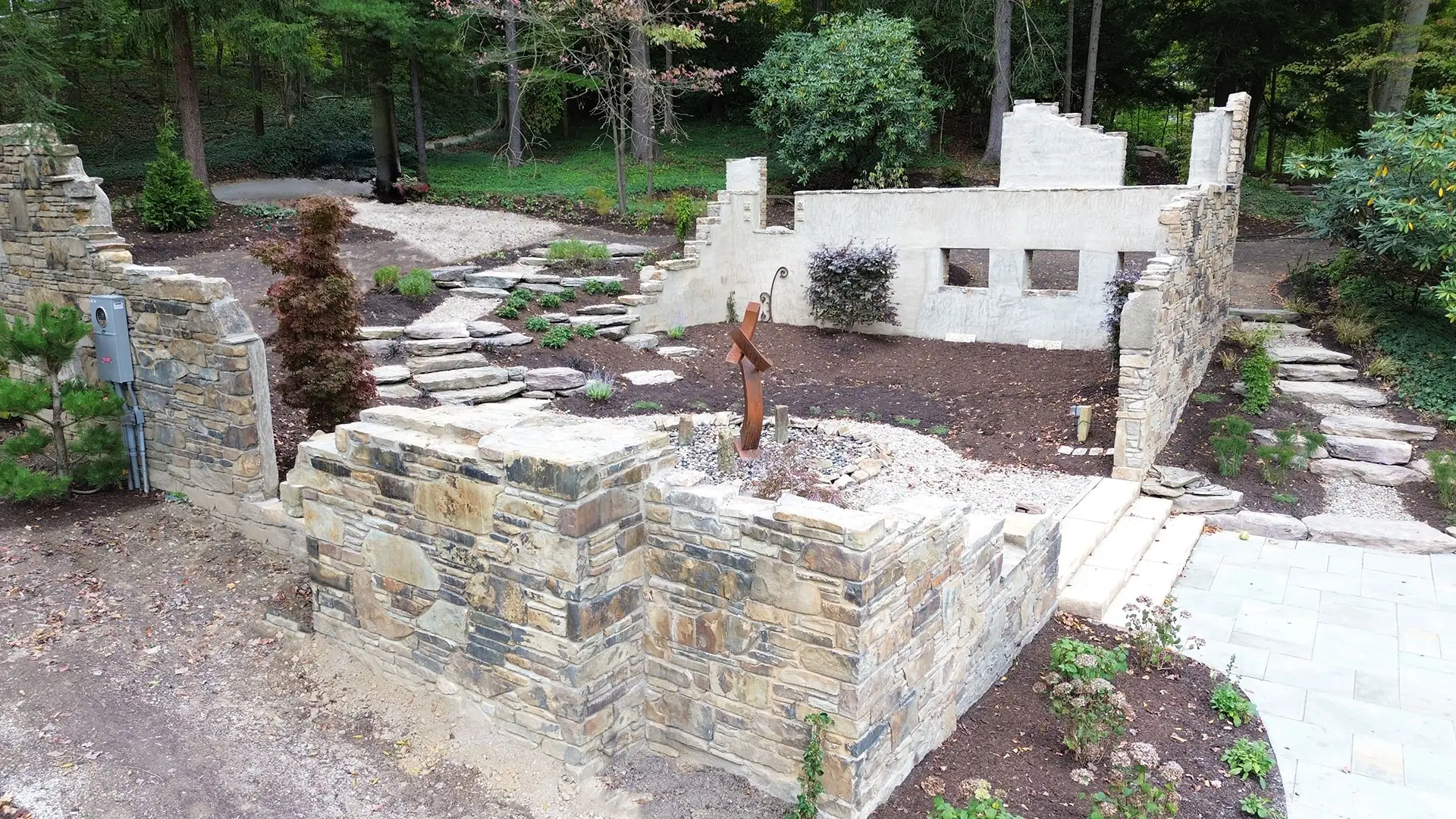 Renovated, demoed and rebuilt sections of an existing house foundation and designed to be an old house ruin with history and landscaping.
