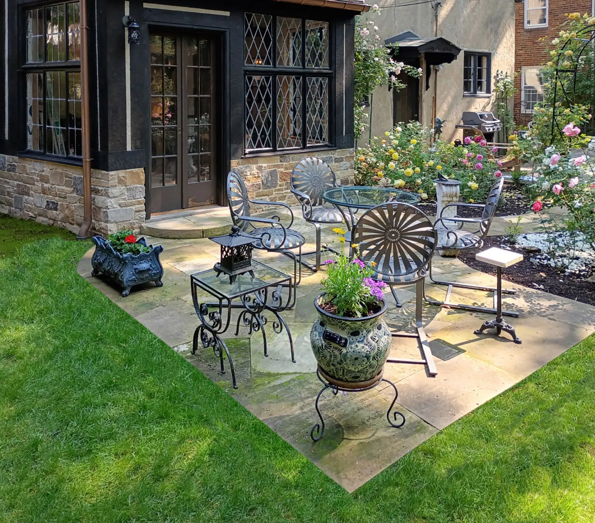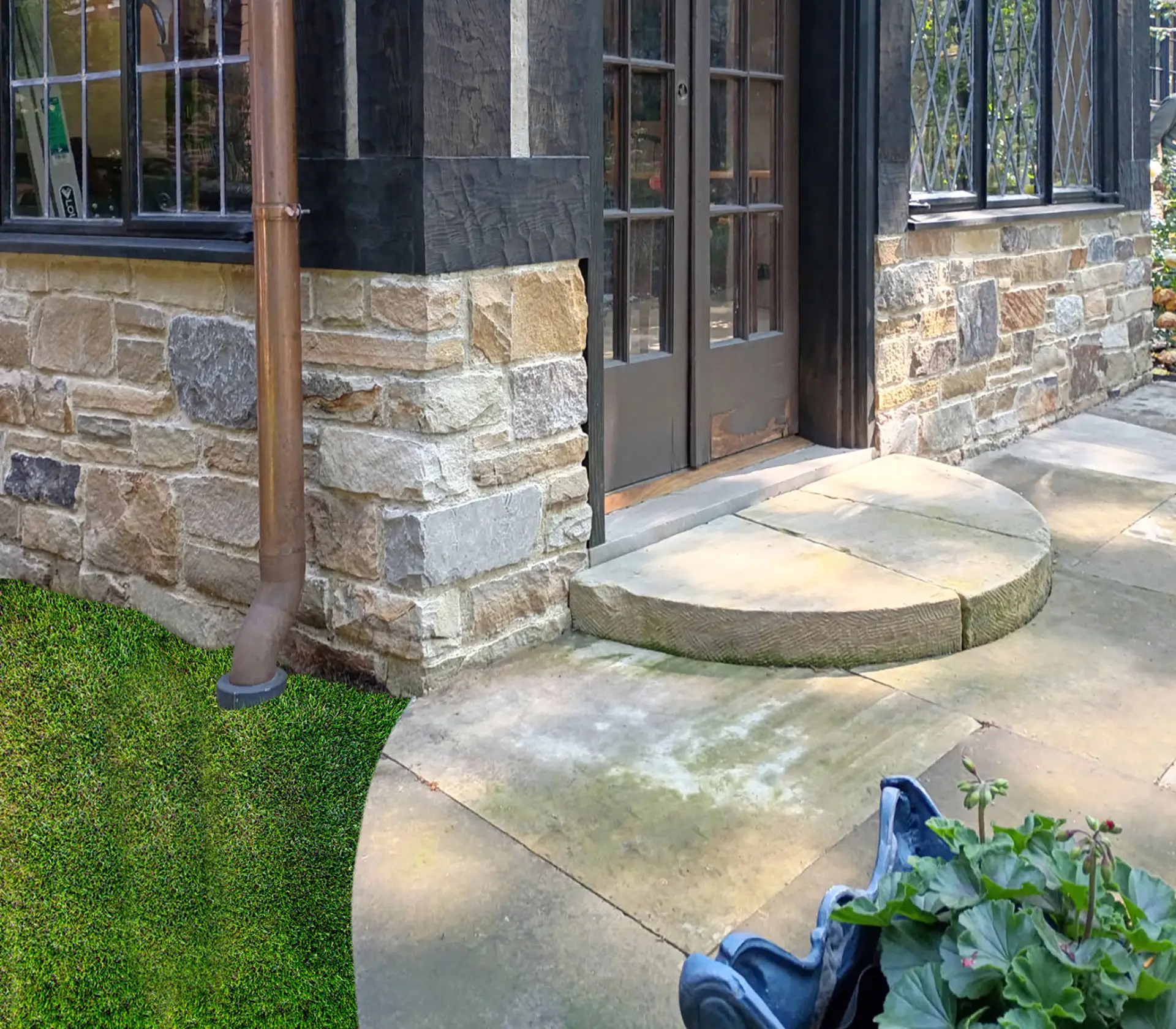 Installed Indian Creek stone veneer Waynescoat on new addition and new reclaimed sandstone drylay patio random patter no joints.