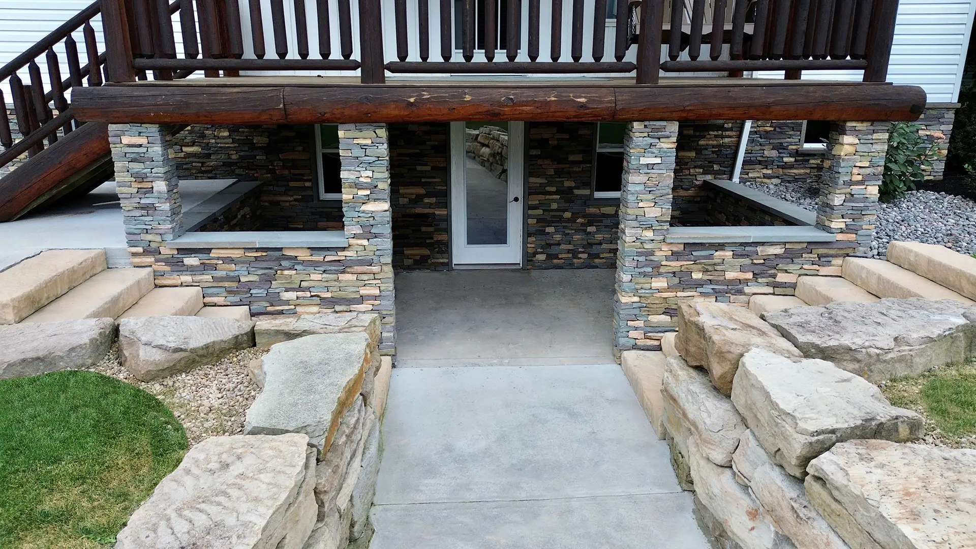 Installed full color Bluestone Natural Thin stone veneer over an existing CMU foundation with Laticrete Mortar System.